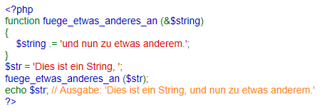 Wenn eine Funktion einen Parameter generell als Verweis behandeln soll, setzt man in der Funktionsdefinition ein kaufmännisches Und (&) vor den Parameternamen: